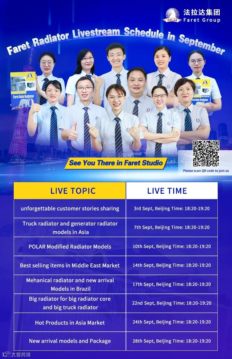 2021年9月法拉达集团与您相约线上直播间,法拉达精英主播在线详细介绍各类最新冷却系统产品,助力客户赢得市场先机,法拉达诚邀各界客户朋友,在线莅临指导!