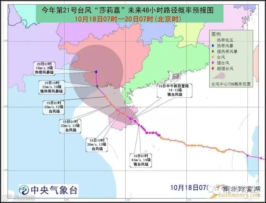 今年第21号台风“莎莉嘉”和第22号台风“海马”目前正向我国华南沿海奔袭而来,预计17日至19日,南海大部、广东沿海、广西沿海、海南岛将有10级以上大风,同时,海南岛、广东、广西南部和西部等地将先后出现暴雨或大暴雨。