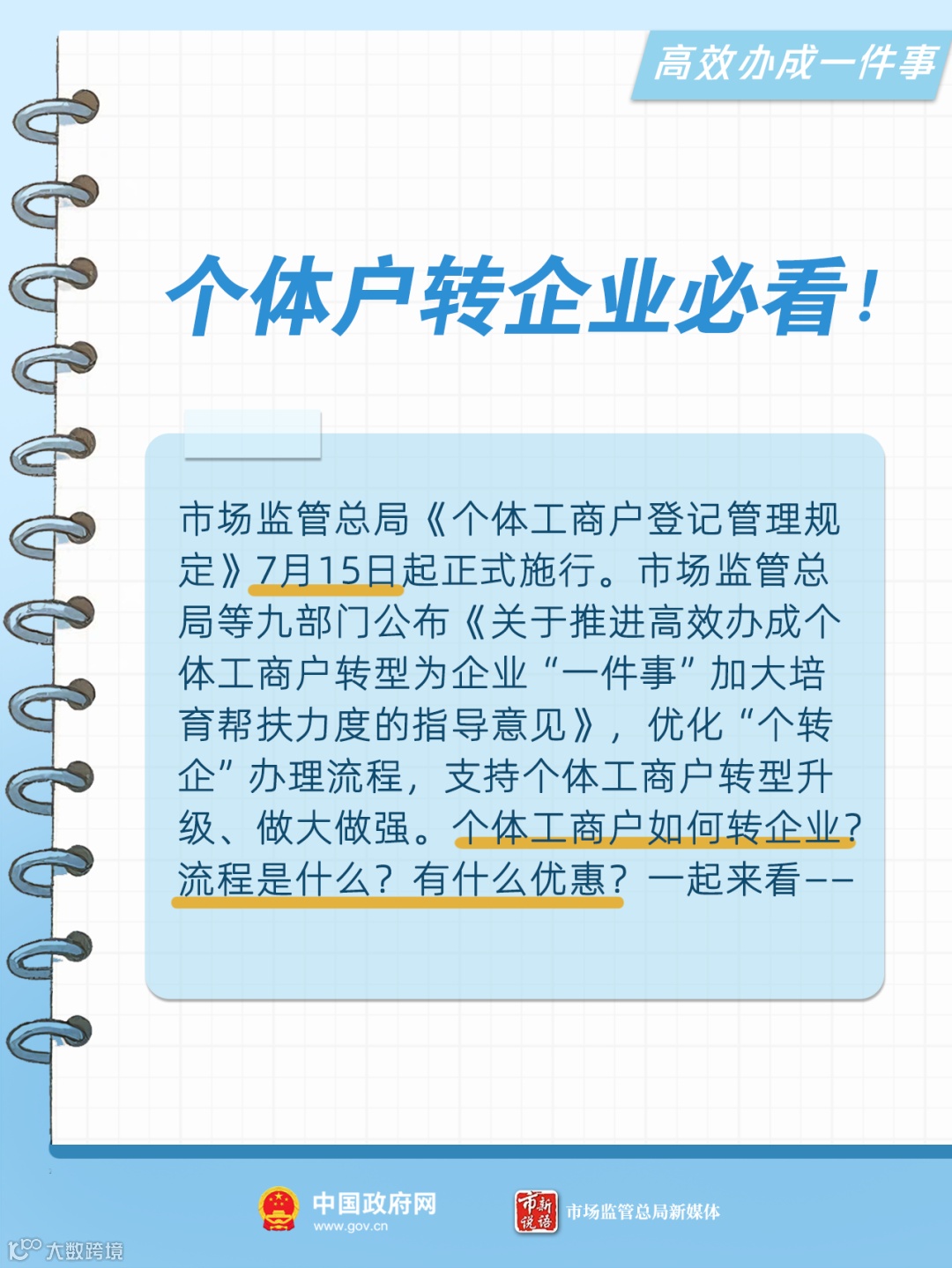 导读:相关链接:1.个体工商户登记管理规定2.市场监管总局等九部门公布《关于推进高效办成个体工商户转型为企业“一件事