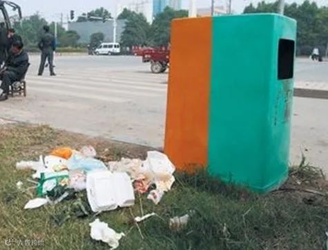 但垃圾桶前却有一堆垃圾