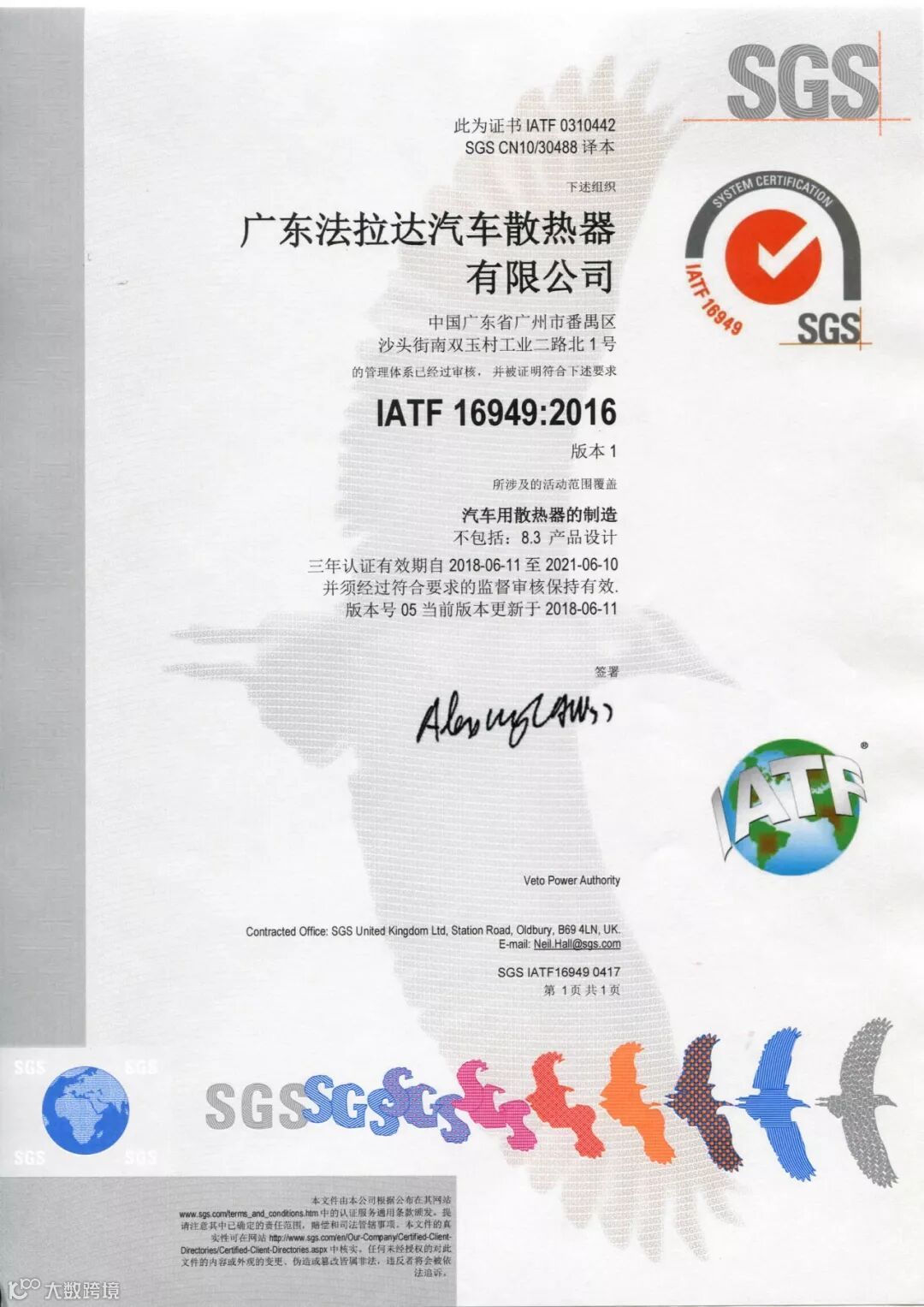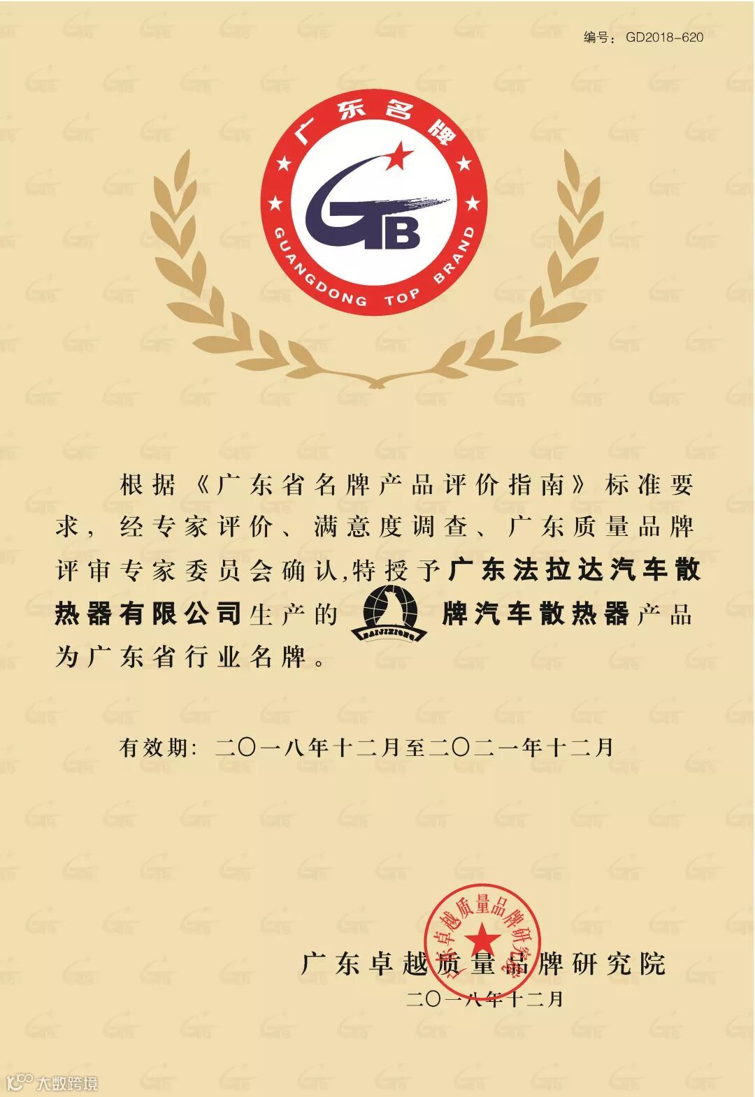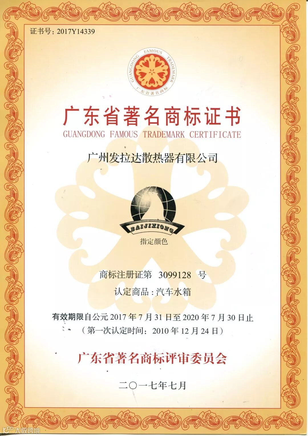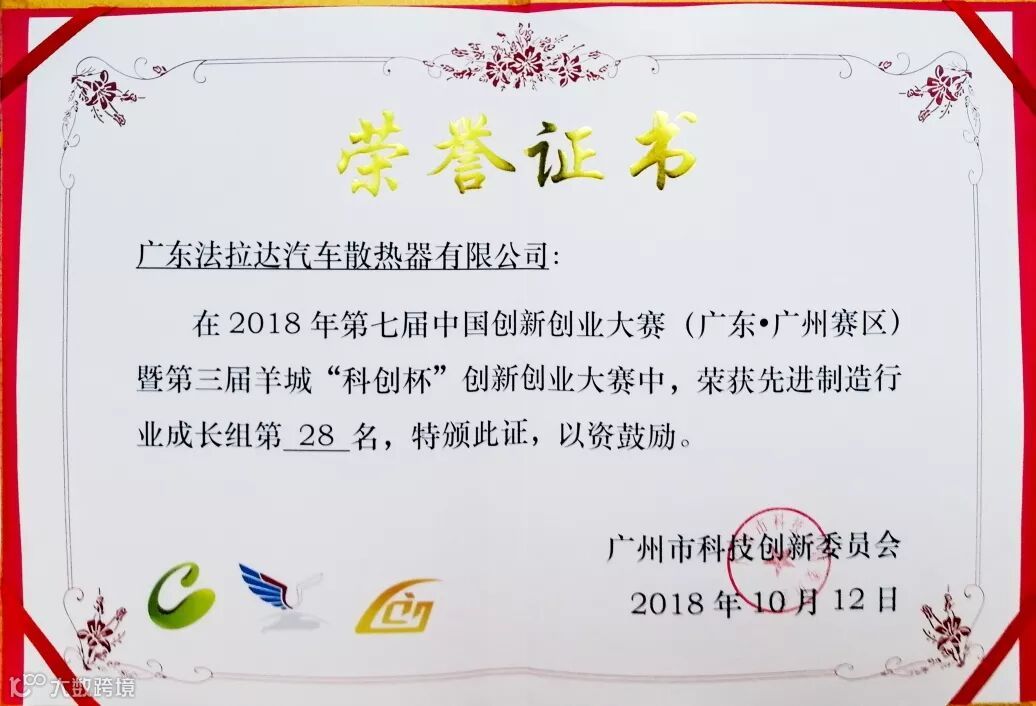 在2018年度法拉达集团荣获<改革开放四十年 番禺优秀制造业企业及优秀企业家>和<产业高端人才>荣誉称号以及荣获番禺厂商会<科技奖>和<纳税奖><广东省制造业协会第二届理事会副会长单位><广东省产业发展促进会第一届理事会副会长单位>,<荣获广州市劳动关系和谐企业AAA级>连续六年荣获<中国银行十佳结算客户荣誉>,连续六年被评为<广东省守合同重信用企业>,连续六年被评为<中国内燃机零部件排头兵企业>,旗下北极熊商标连续六年被评为<广州市著名商标>,旗下北极熊商标连续六年被评为<广东省著名商标>,法拉达获得如此众多荣誉称号是政府对我们的认可,肯定了法拉达处于行业的前列,以及对法拉达的诚信经营的支持!并通过专家严格的审核、综合评价和广东质量品牌评审专家委员会审议确认,法拉达北极熊品牌汽车散热器荣获“广东省名牌产品”称号!