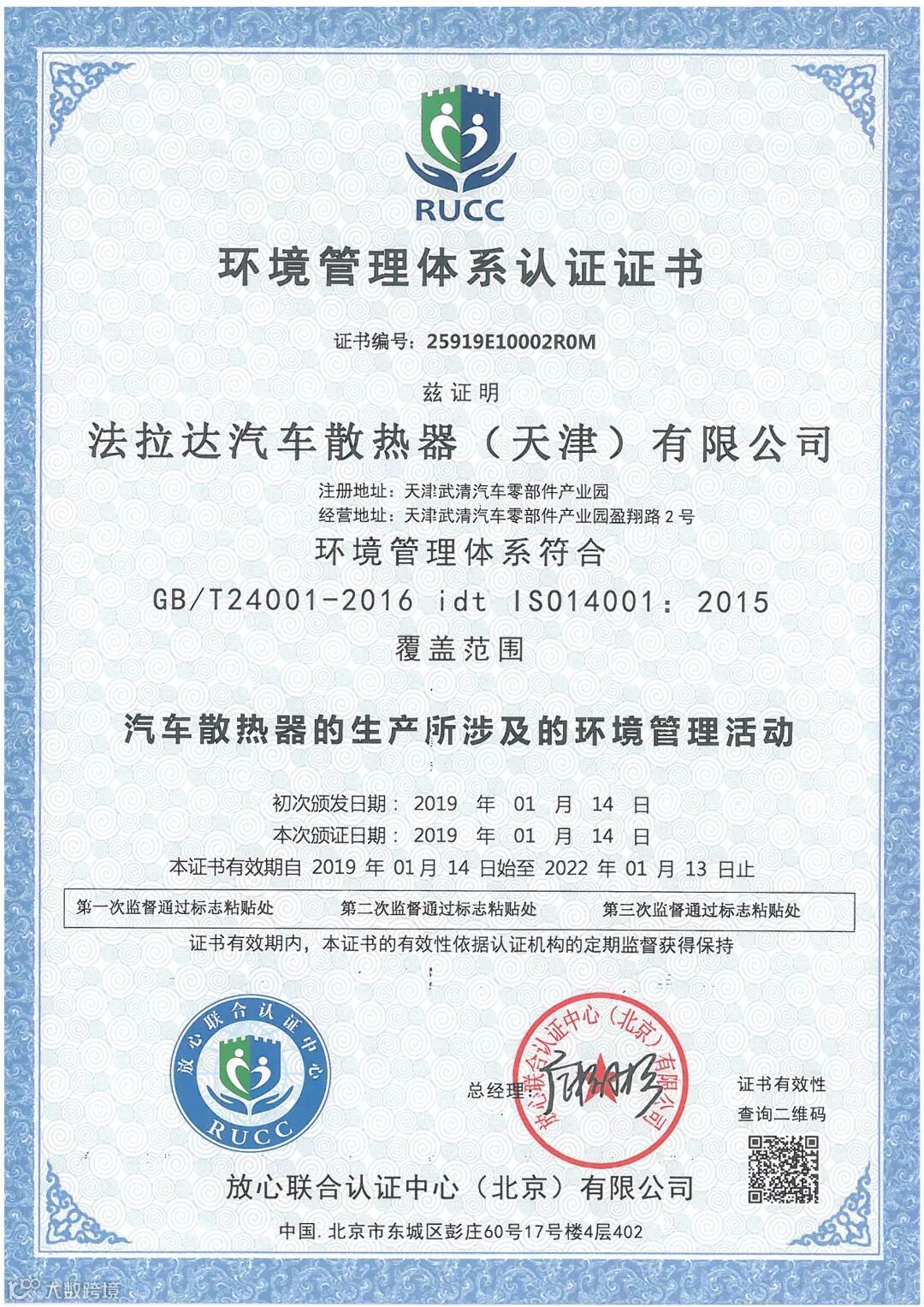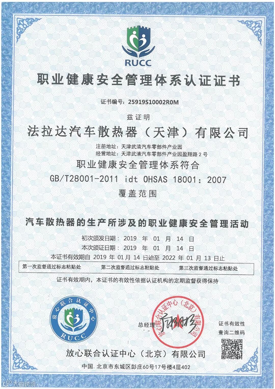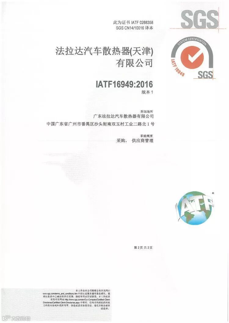 2018年度集团通过IATF:16949体系换证审核,已连续6年通过TS16949体系认证。集团还通过ISO14001/18001职业健康安全管理体系。在2018年11月集团通过法雷奥供应商管理现场审核!