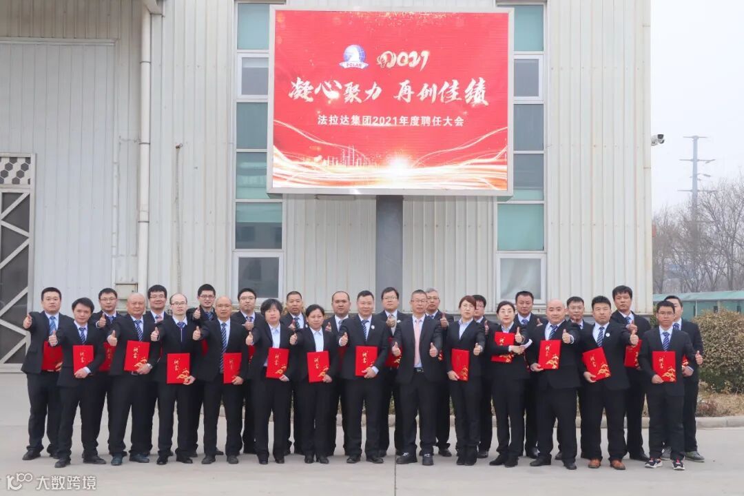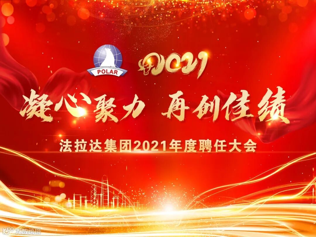 凝心聚力,再创佳绩!2021年3月法拉达集团广州公司与天津公司对管理干部举行了隆重的授聘仪式。授聘仪式上张董事长与公司管理层签订了目标责任书并对公司管理层人员颁发了聘书,授聘管理层进行了宣誓表达了管理层对达成年度战略目标的决心!
