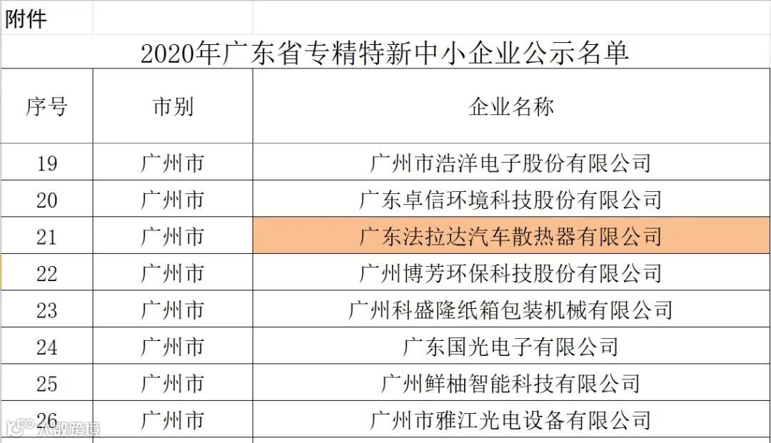 近日广东省工业和信息化厅公布了“2020年广东省专精特新中小企业”名单。法拉达集团经过企业申报和协会推荐、实地考察、审核等程序最终审核通过,获得了《2020年广东省专精特新企业》荣誉称号!彰显法拉达集团在全球冷却系统专业制造领域高质量发展的核心竞争力。