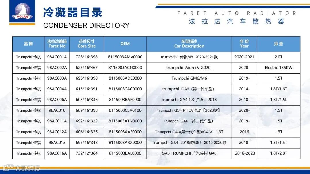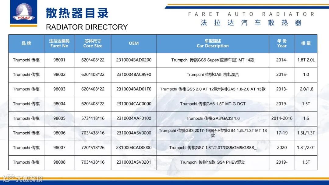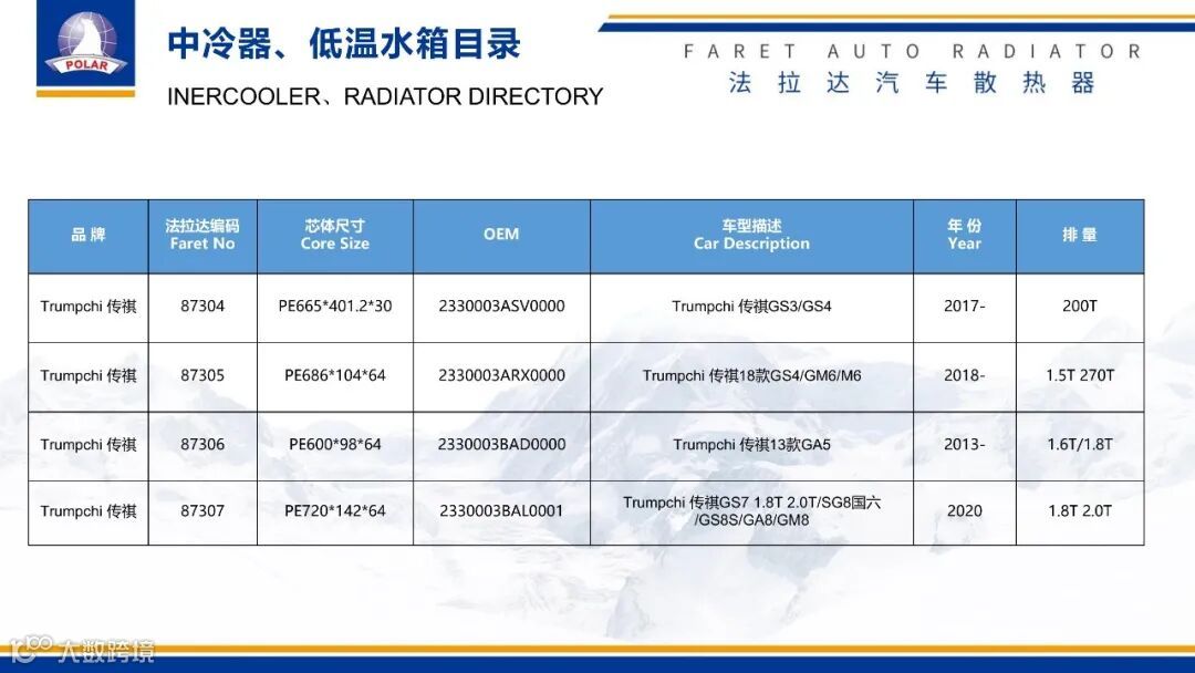 法拉达POLAR北极熊传祺系列汽车散热器产品