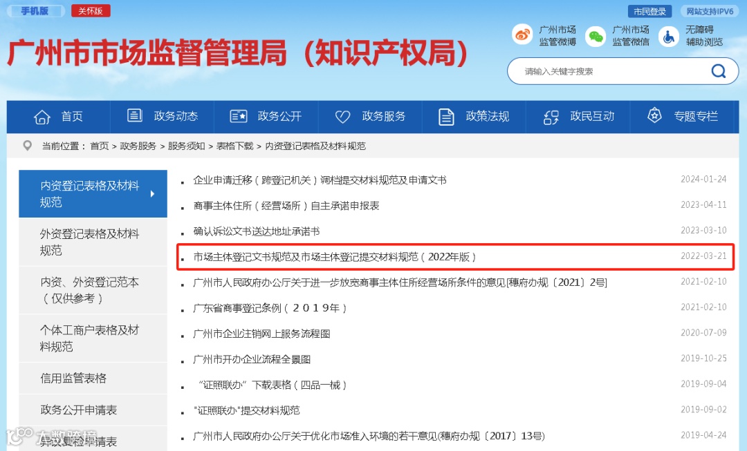 (链接:http://scjgj.gz.gov.cn/ywt/)