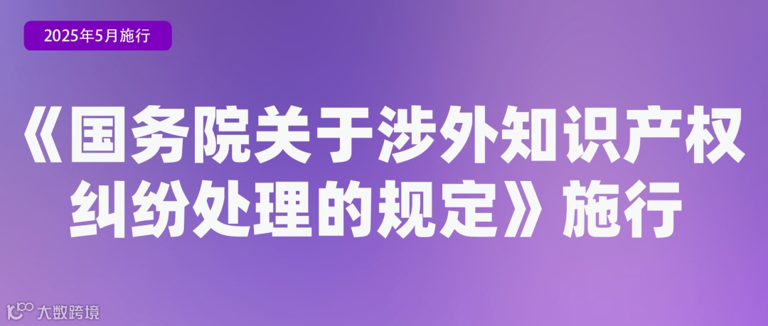 《国务院关于涉外知识产权纠纷处理的规定》自2025年5月1日起施行。《规定》明确国务院有关部门加强国外知识产权信息查询服务和预警,健全涉外知识产权纠纷处理指导工作机构和工作规程,为纠纷处理提供应对指导和维权援助。反制不公平待遇,对外国国家以知识产权纠纷为借口对我国进行遏制、打压,对我国公民、组织采取歧视性限制措施等,国务院有关部门可以依法采取相应反制和限制措施。