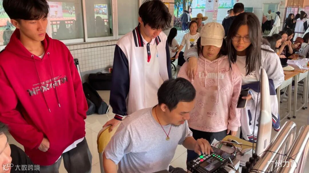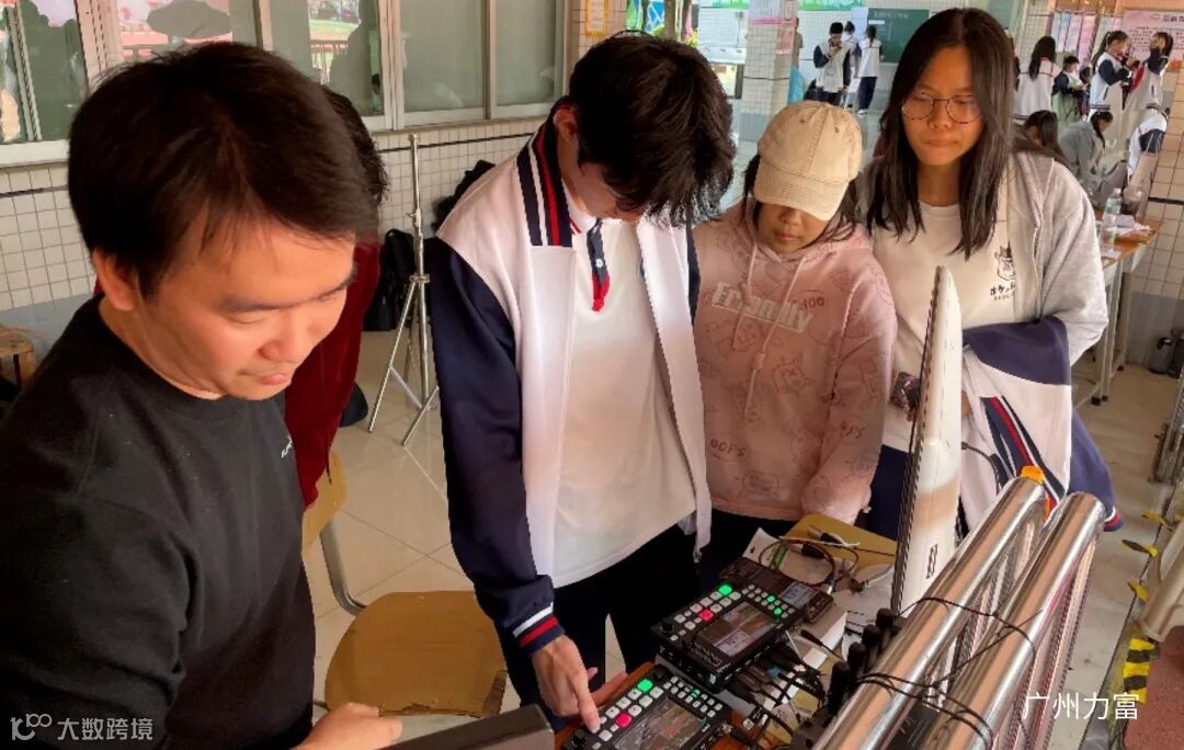2023年11月21日,广州力富的工作人员们来到广州市轻工技师学院白云校区布置运动会的直播活动会场。