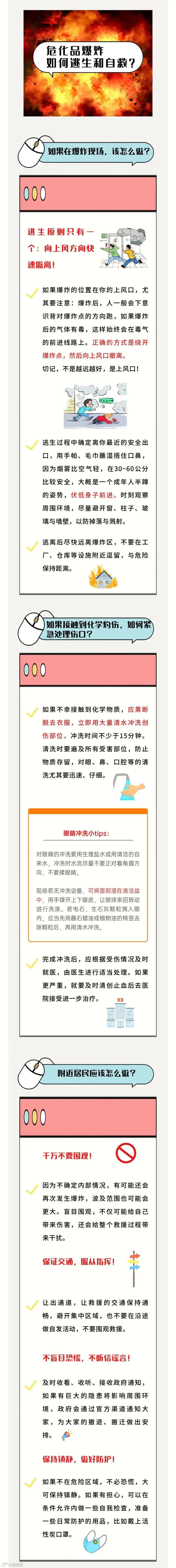 如果身旁的危化品运输车发生了事故,驶离道路被阻断,周围车辆驾乘人员则应当第一时间撤离现场。然而,危化品种类繁多,危险性质各不相同,如何安全地撤离也与周围水体、天气、地形、风向等因素密切相关。因此,还要在确保行车安全的前提下留意周围环境,确保撤离时选择正确的逃生方向和路线。