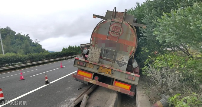 9月24日下午17时58分,一辆装载32吨发烟硫酸的罐车从宁德运往莆田,途经连江县浦口高速路段南峰隧道出口附近,发生单方交通事故导致罐体倾斜。