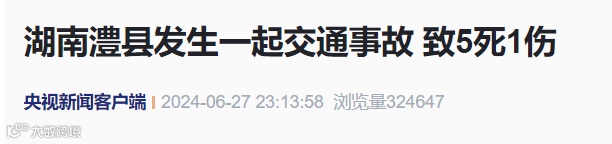 湖南澧县公安局交警大队6月27日晚发布警情通报:6月27日15时许,国道207澧县复兴镇路段与二广高速路出口处发生一起交通事故。经初步调查,一辆湖北牌照罐车紧急刹车,因雨水打滑发生侧翻,压住一辆在路口占道的小车,造成5死1轻伤。