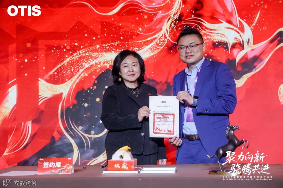 荣誉之外,更有重磅合作落地!在全场伙伴的见证下,佑创电梯与奥的斯中国正式签定2026年度承诺意向书。