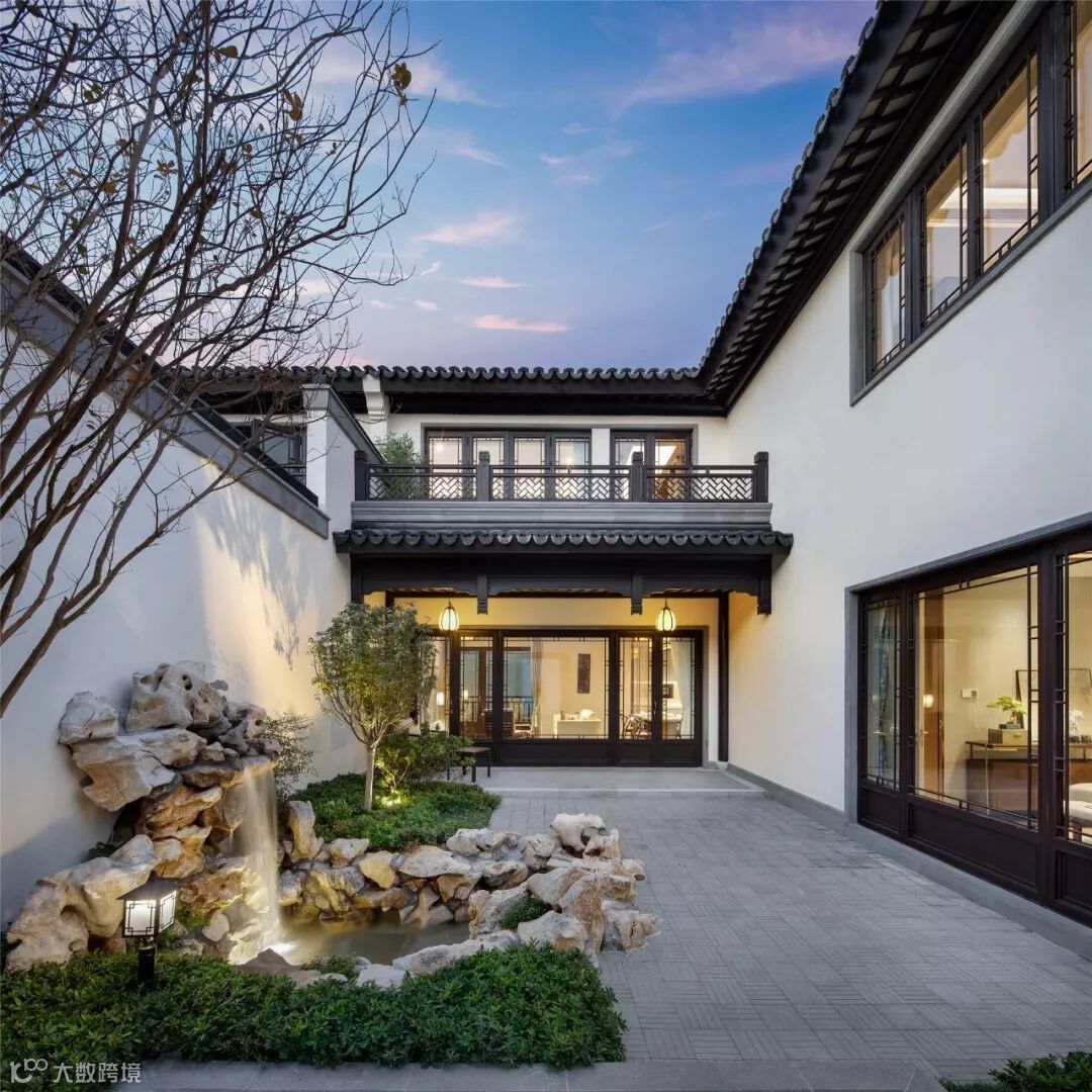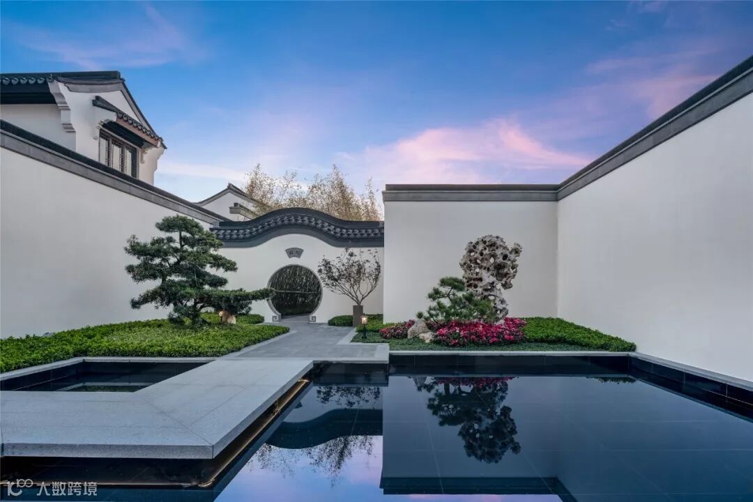 一路归来直至私家院落。主庭院的迎宾空间,便于客人与主人的互动,相对私密的侧院空间,为家庭成员提供了更舒适的庭院生活,配合院落中精心搭配的水石花木,静坐与玩乐之间,满足了一家子互动的趣味性与开放性。