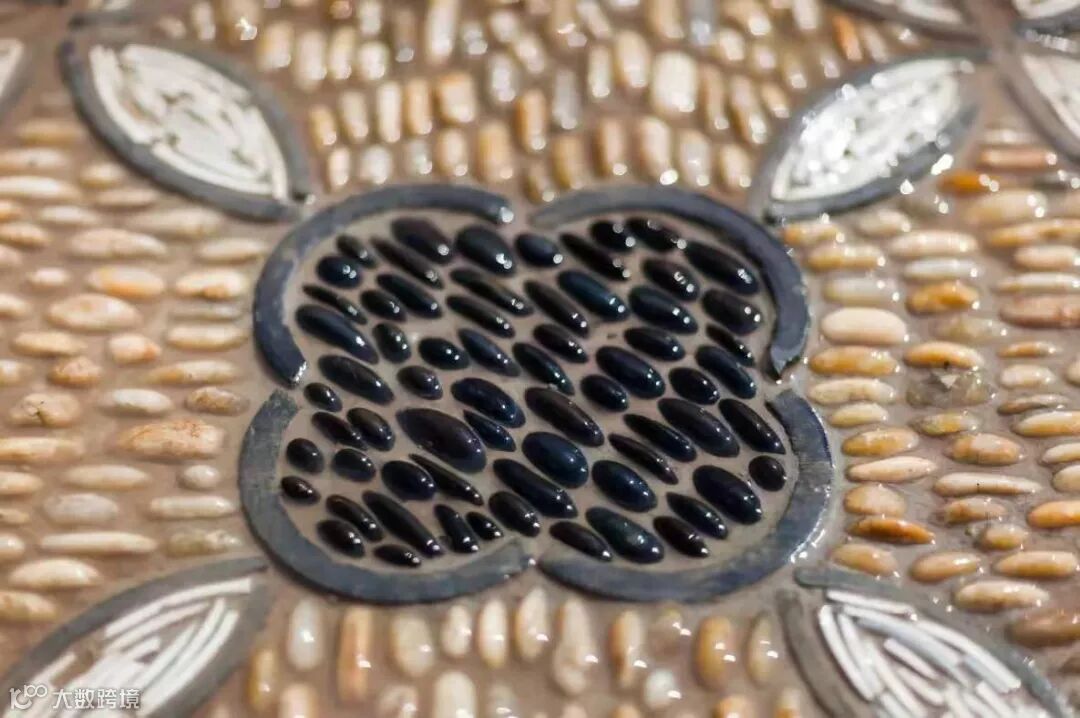花街铺地,作为苏州造园八大作里的土作,便是匠人匍匐在地,以手工一颗一颗卵石镶嵌而来。卵石粒的长度皆需要控制在3厘米左右,宽1~2厘米之间,往往100颗鹅卵石中仅能挑出4~5颗。在精益求精的施工铺设标准要求下,师傅首先需要进行地面找平,再而夯实平整,接着才能覆上轻沙,再次整平后覆盖预制的水泥,然后用网砖做好框架,才能开始铺设。即使是两名经验丰富的师傅带队,3天时间也不过仅能拼出一平米的大小。