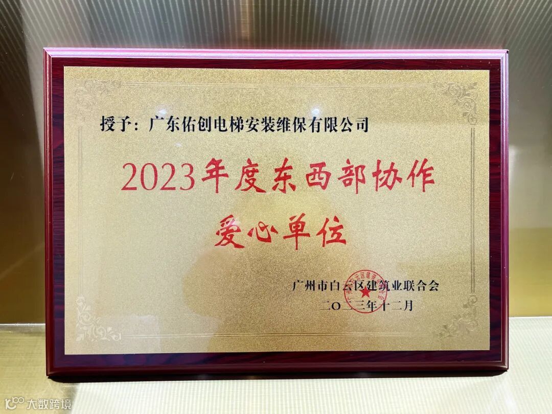 会议表彰了一批在2023年度东西部协作中表现突出的会员单位。其中,广东佑创电梯安装维保有限公司作为白云区建筑业联合会的重要会员单位,凭借对贵州省罗甸县慈善事业的大力支持,荣获“2023年度东西部协作爱心单位”的殊荣。