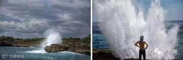 过去我们曾经拍摄这样的照片,甚至自己站在大海里,让大浪从我们的背后打过来。但是这样的照片拍摄,也必须很谨慎对待,因外大浪也有可能把岸上的人拖下去,危险程度相当大。