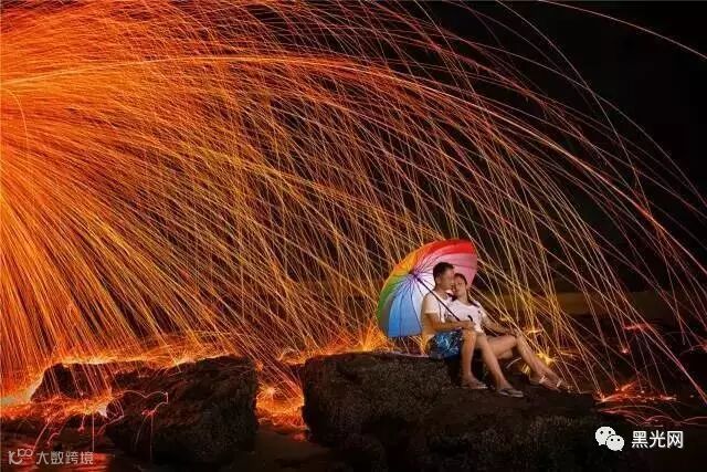相机慢门拍摄星轨,光纤轨迹,这样美丽的画面是很多新人和摄影师向往的,然而点燃钢丝棉甩出来的火星温度很高,碰到人的身上会容易烫伤,不管你怎么甩,给新人做好防护是重中之重。