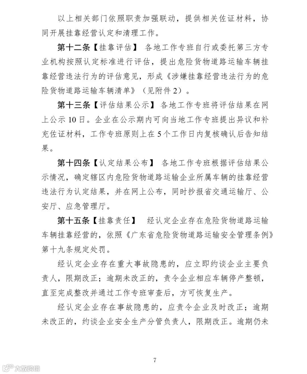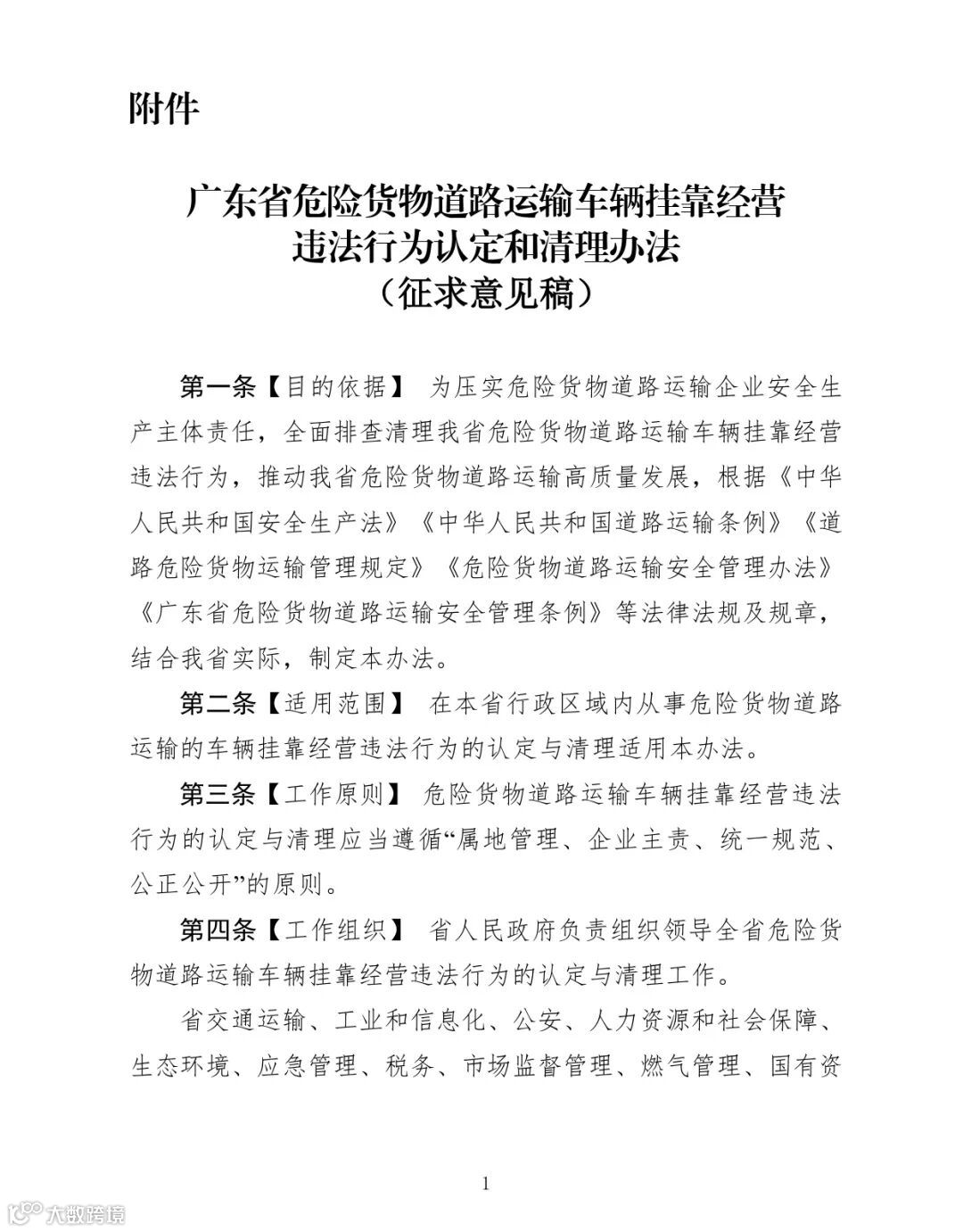 附件:《广东省危险货物道路运输车辆挂靠经营违法行为认定和清理办法(征求意见稿)》