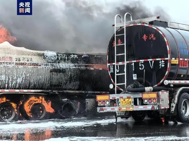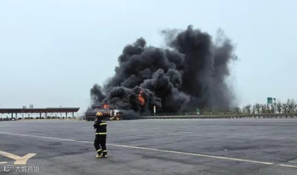 事件:4月19日上午,天津市滨海新区秦滨高速临港收费站出口一辆载有润滑油的罐车与一辆载有柴油的罐车相撞,造成两辆罐车起火。