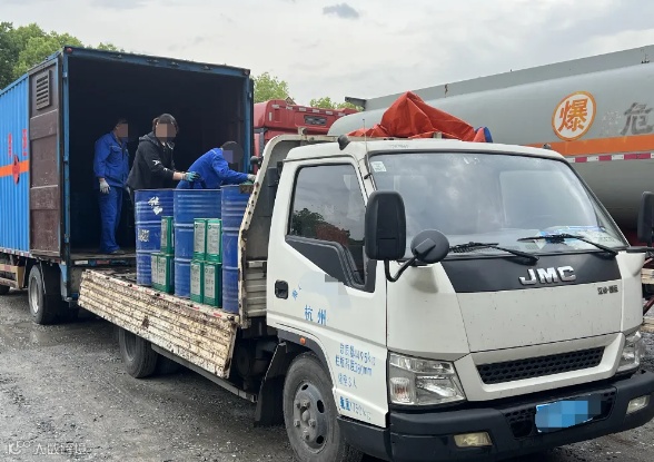 事件:4月18日上午,浙江寿昌中队的执法人员巡查至320国道寿昌镇桂花村路段时,发现一辆轻型普通货车被油布包裹地严严实实。经检查,车厢内装有松香水18桶,甲醇22桶,这两类都属于三类危化品。