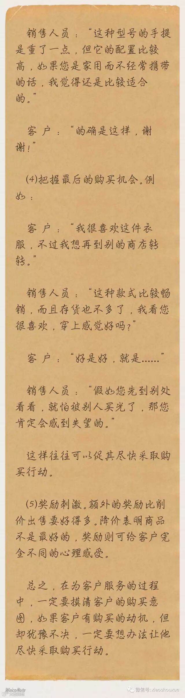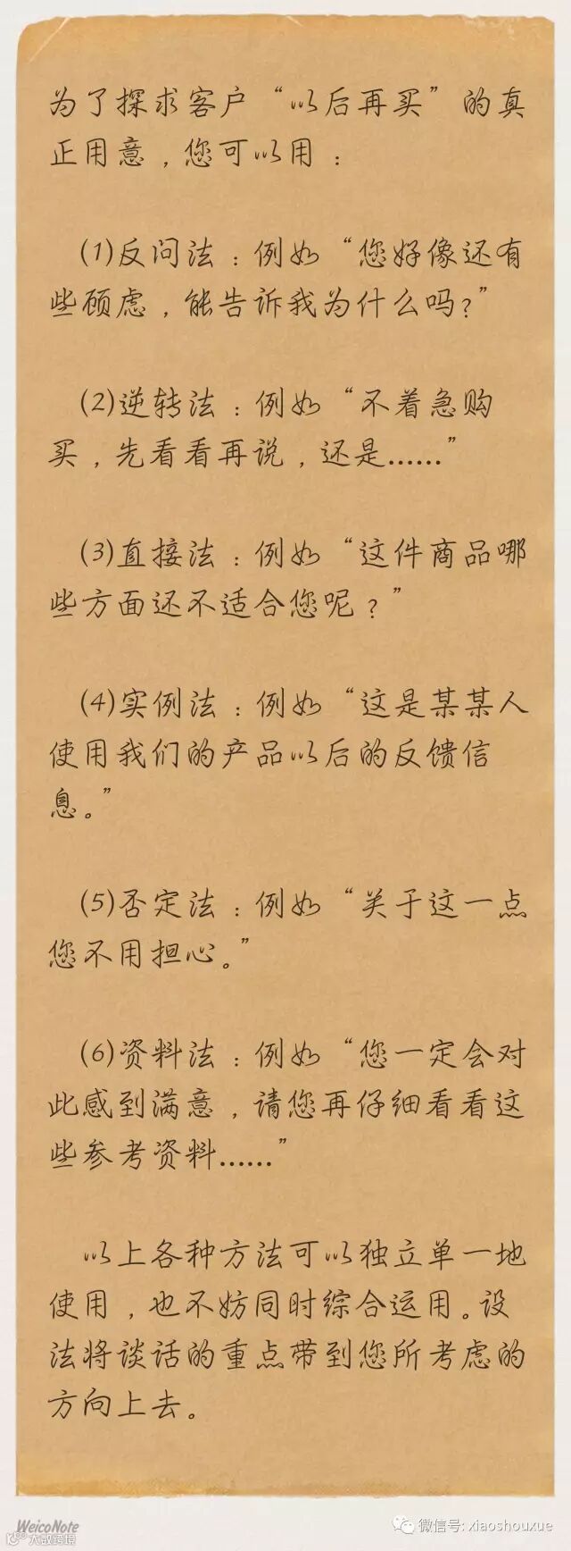 导读:在销售过程中,销售人员经常会碰到这样一种情况:客户对产品非常感兴趣,但一谈到买,他会拿各种理由搪塞,眼看一桩