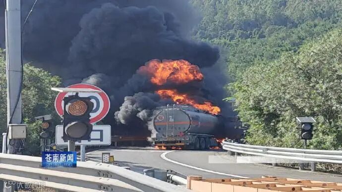 事件:10月15日下午13时21分,一辆从乐清开往福鼎的油罐车,在途经G15沈海高速公路福建方向观美出口匝道时起火,所幸扑救及时无人员伤亡。