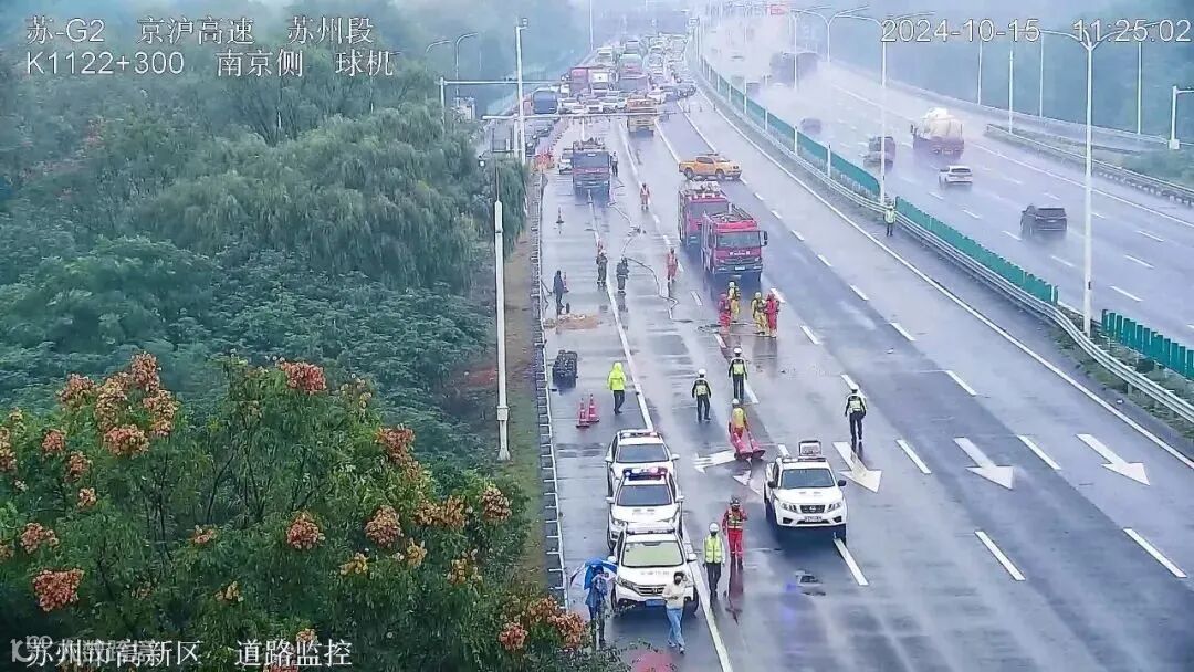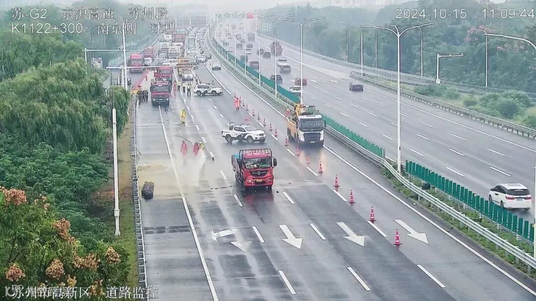 事件:10月15日上午9:39,宁沪高速苏州段指挥中心收报,南京方向K1122处有危化品车泄漏。