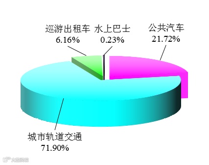 本月全市公共交通客运量为4.00亿人次,日均客运量为1291万人次。其中,城市轨道交通2日均客运量为928万人次,常规公交3日均客运量为280万人次,巡游出租车4日均客运量为79万人次,水上巴士5日均客运量为3万人次。从公共交通客运占比来看,本月城市轨道交通客运量占71.90%,常规公交占21.72%,巡游出租车占6.16%,水上巴士占0.23%。
