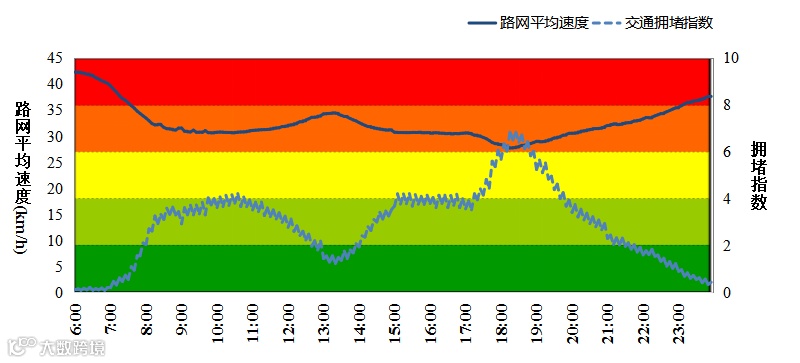 本月广州中心城区城市道路工作日平均速度为32.49公里/小时,早通勤时段平均速度为32.96公里/小时,晚通勤时段平均速度为28.46公里/小时。