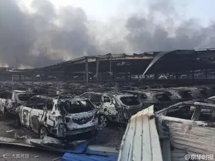 】6时30分许,新京报记者进入事故中心东疆保税港区瑞海国际物流有限公司。7-8辆消防车被炸毁;车附近,消防员正搬队友尸体,至少抬走3具烧焦尸体;战士边哭边灭火;事故中心附近,有五六家物流公司全被炸毁。