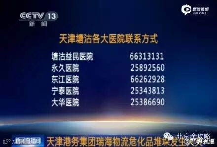 【紧急扩散:附近医院联系方式】爆炸地点位于滨海新区第五大街与跃进路交叉口,附近医院有:塘沽益民医院,022-66313131;永久医院,25892560;东江医院,66262928;宁泰医院,25343813。救人要紧,请大家为生命让出通道!