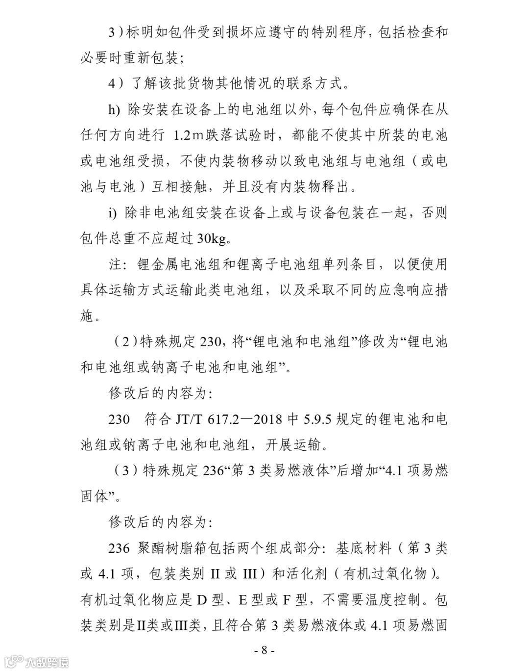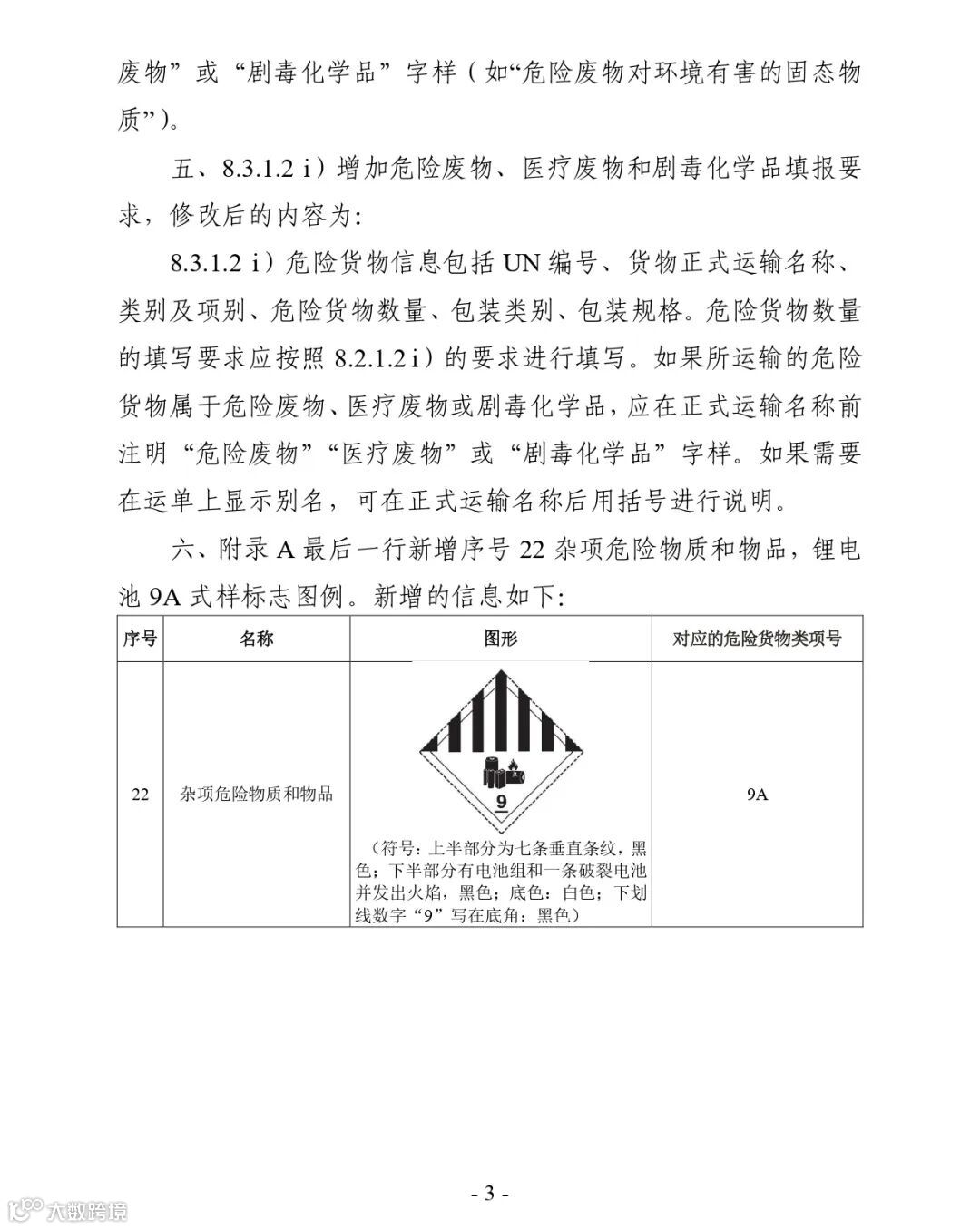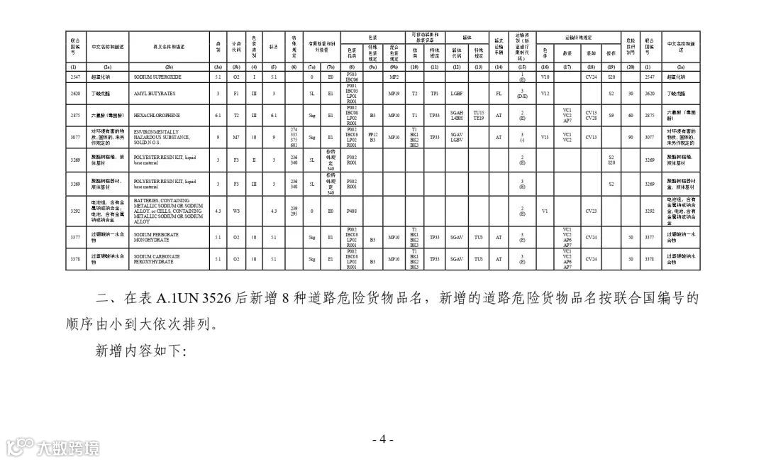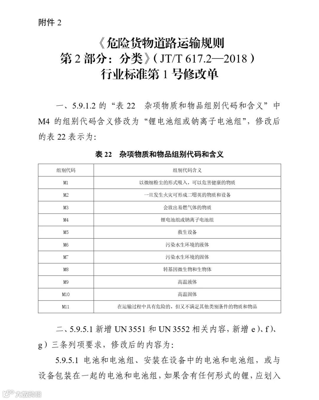 附件:5.《危险货物道路运输规则 第5部分:托运要求》(JT/T 617.5—2018)行业标准第1号修改单