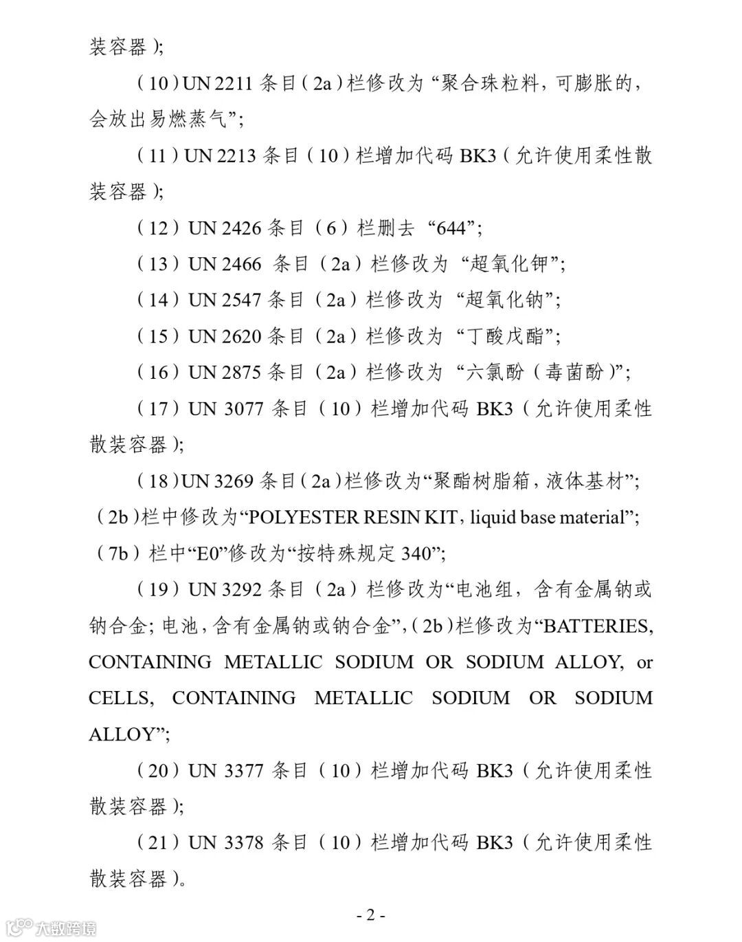 附件:2.《危险货物道路运输规则 第2部分:分类》(JT/T 617.2—2018)行业标准第1号修改单