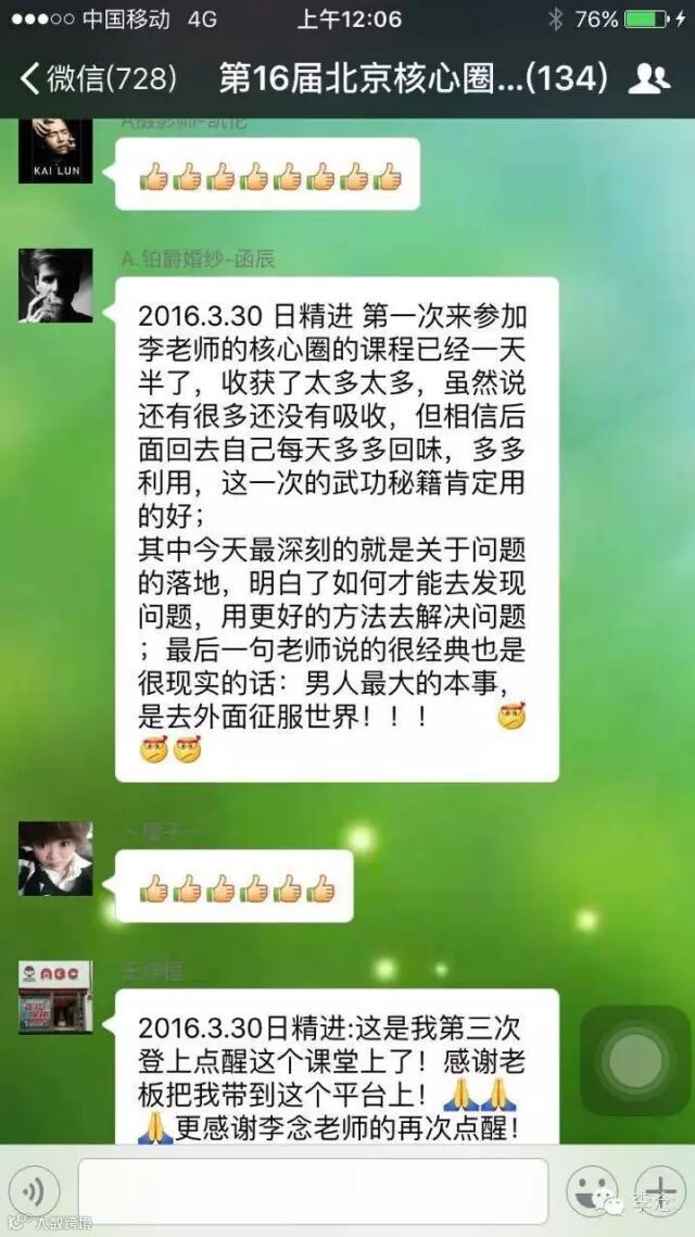 河南总裁张涛:每次来到课程上都会提升自身的能量、每次来到课程上都会看到无数奇迹、今天每突破了自己从上不够绽放、胆怯、内心的匮乏和不接纳到下午的积极主动体会到了一种精神心灵上的蜕变、真的感恩感谢点醒平台把我们这些活在自我折磨框架中的人点醒我以前很少关注别人,通过学习悟到了人生短短几十年、我要让我的家人都活在线上每天快乐愉悦的生活、我首先先改变了自己始终保持在线上、发现我要我愿意、我变世界都在变。自己想改变自己突破自己的这个问题交给上一份满意的答卷!感恩感谢智慧念哥和点醒平台