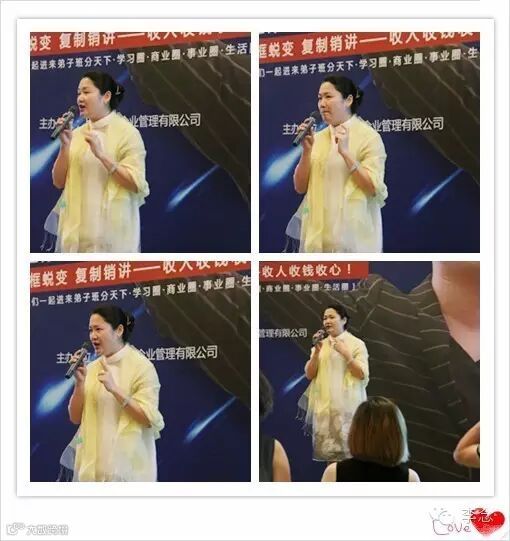 三亚诚信协会会长苏丽娜之前听过很多的课程,花了很多钱,也会上台分享,但是从来没有经过这样的一种形式,通过训练,而不是只有简单的记笔记,存在脑袋里,念哥利用演练人成功突破自己,特别是给我指导了很多演说时候的重要性,我觉得经过一下午的训练演讲,不断的自我确认,我现在在舞台上开口说话要比之前更加有震撼力度,现在我可以脱了鞋子,站在桌子上和总裁们一起鼓掌,呐喊,弟子班真的让我成长,从内心里的绽放自己。我也成功影响更大加入点醒。