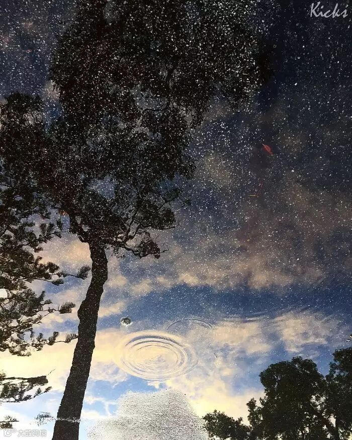 水里的倒影,水下的碎石像是夜晚的星空