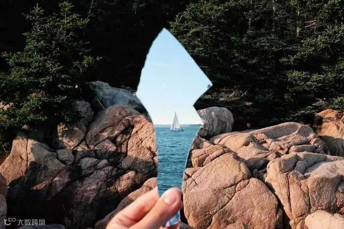 玩相机和玻璃碎片的偶然,拍下了反光的帆船