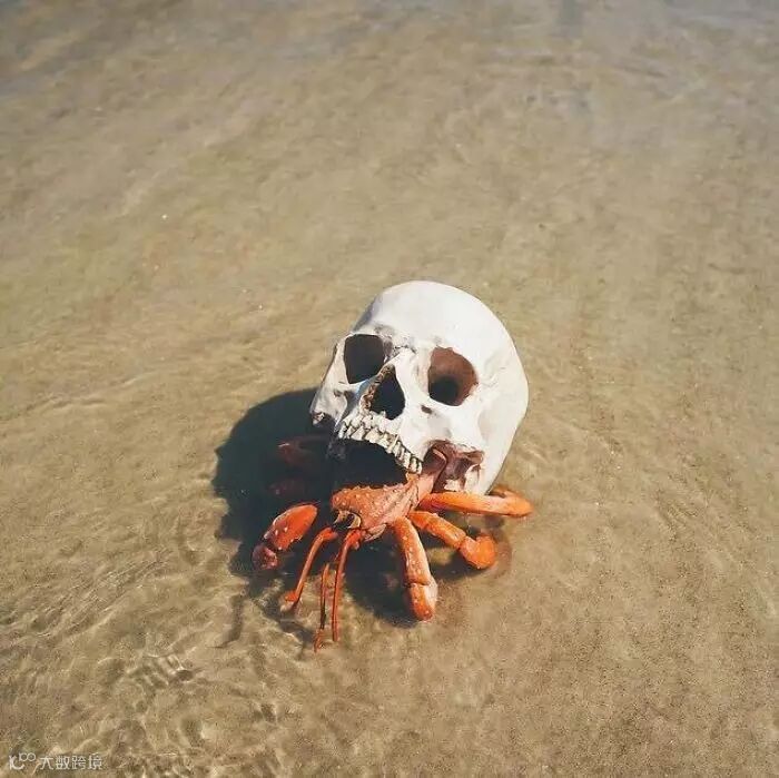 寄居蟹寄居在一个骷髅里