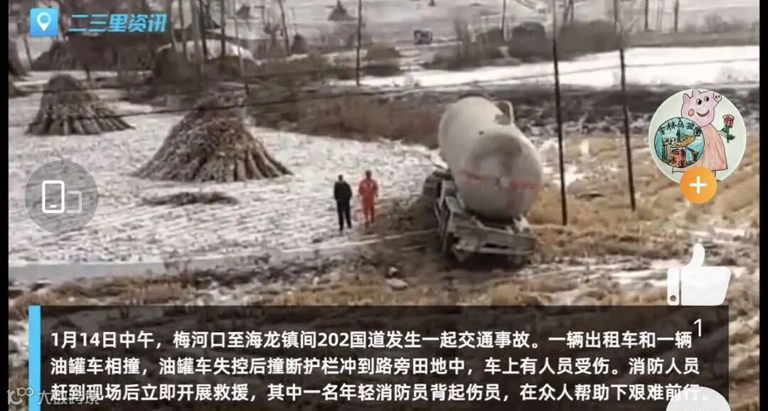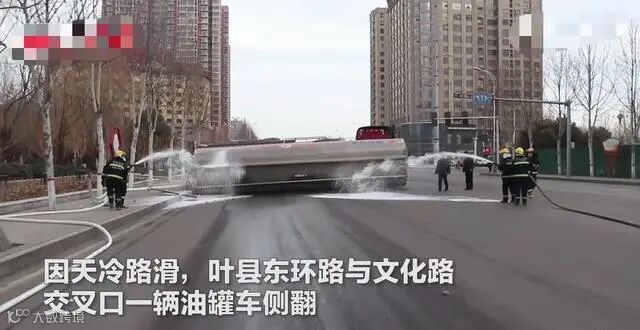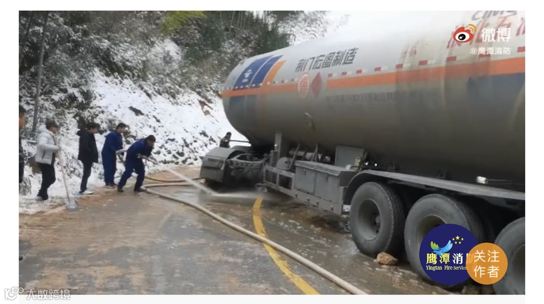道路结冰槽罐车打滑被困了15小时