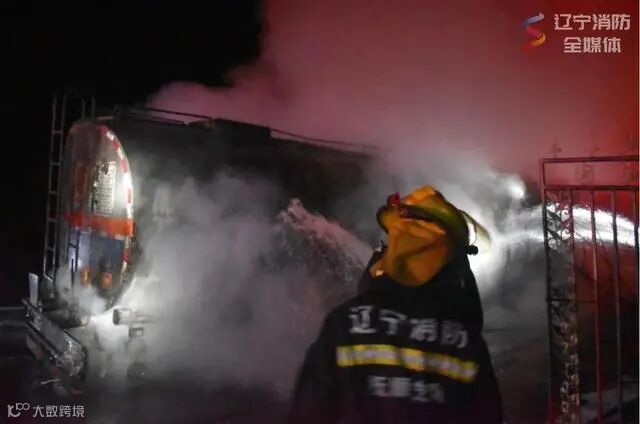 油罐车起火,消防人员“火速”救援