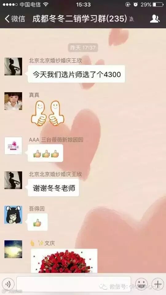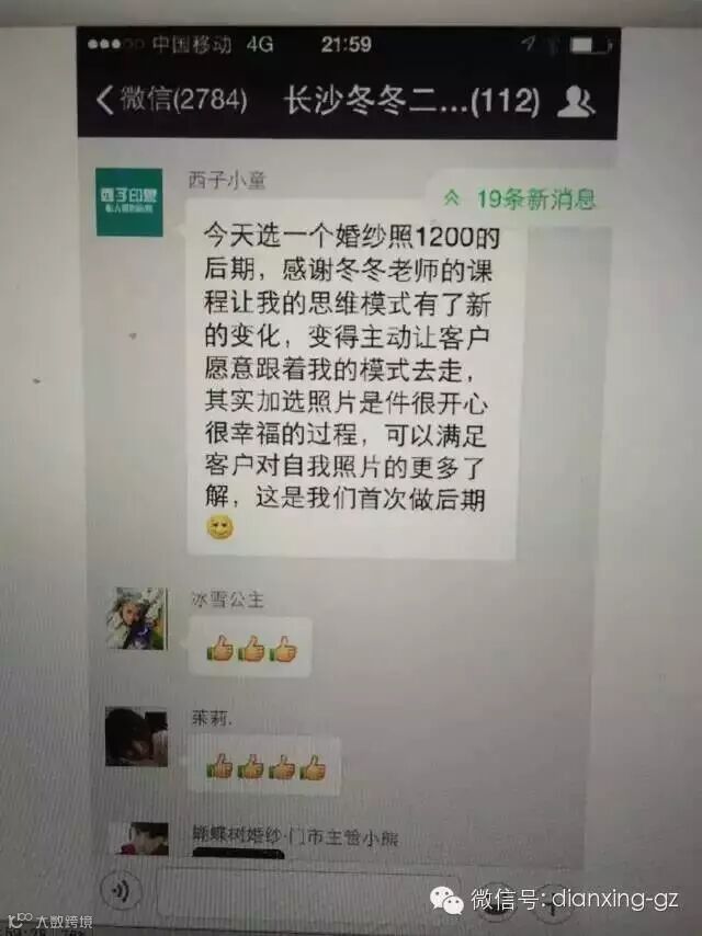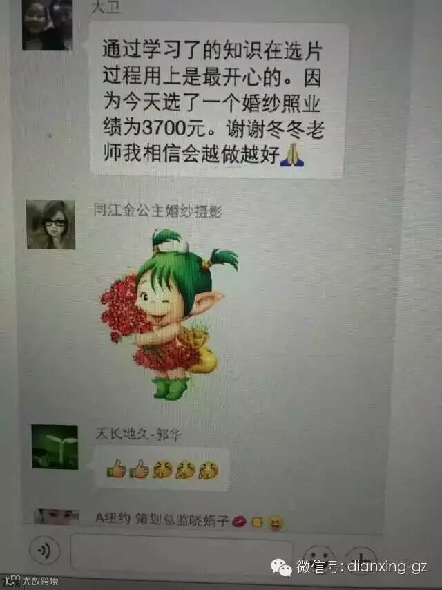——冬冬老师在河南省辅导了三百八十多家婚纱影楼,在全国辅导了六百多家婚纱影楼。每一家的业绩都有一千到三千元不同程度的提升。并且无客怨加选转介绍能够达到百分百的转介绍。