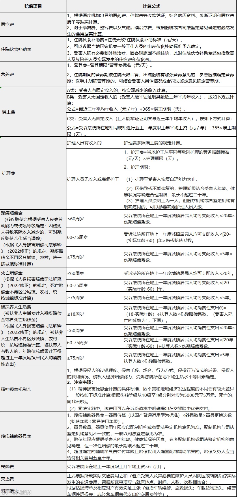 四、交通事故赔偿计算表