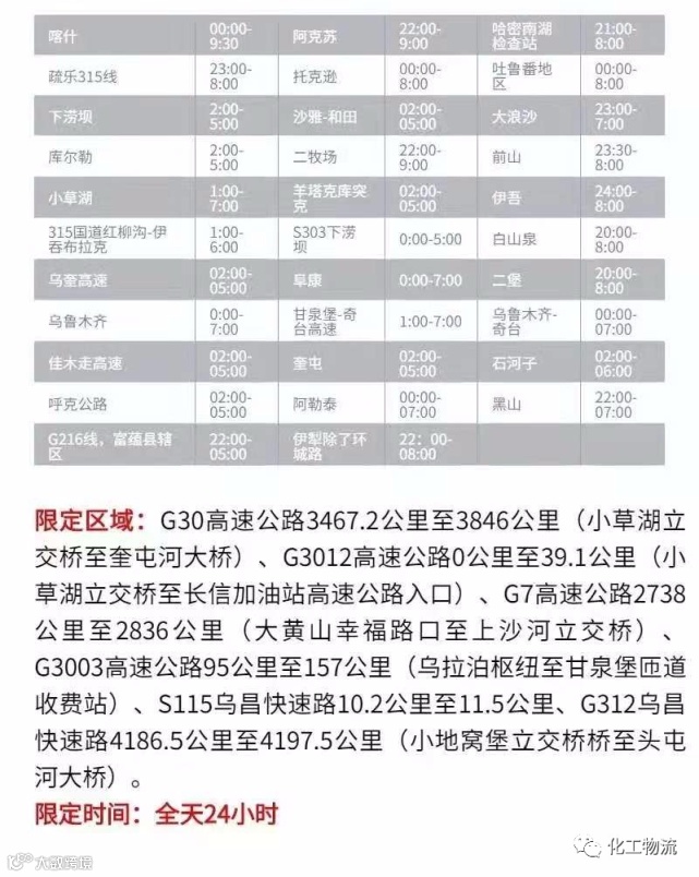 部分区域要对危化品运输车辆24小时限行,且限定在最右侧车道行驶。