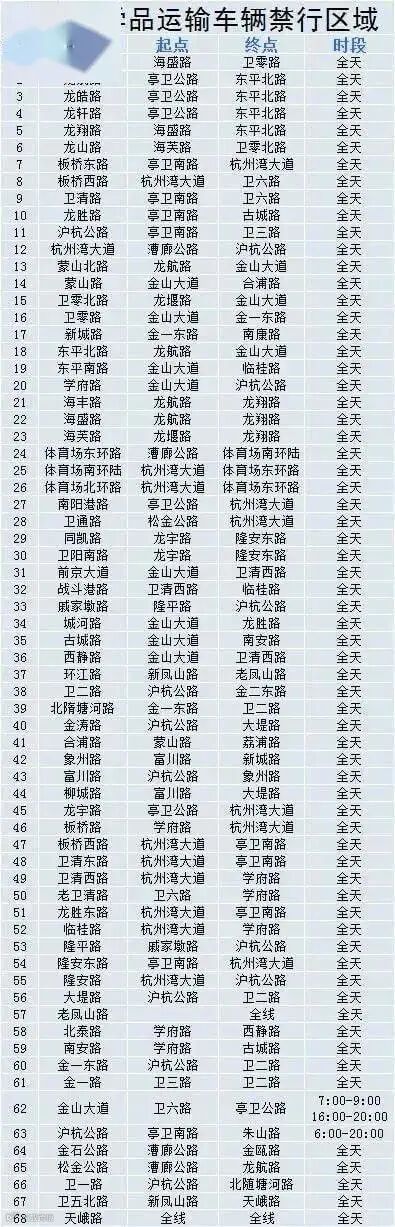 上海金山区辖区内多条道路对危险品运输车采取全天24小时限行,详情请看下图: