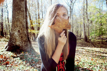 3、拿叶子挡脸,拿花挡脸,拿围巾挡脸……挡眼挡一只,挡脸挡一半。
