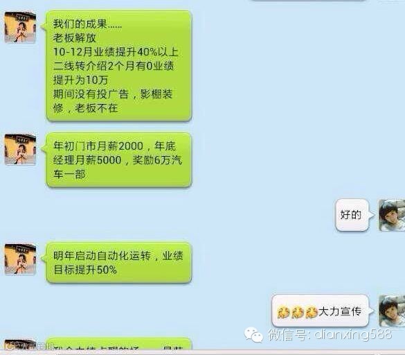 2个店与店之间相互PK 店长带领中高层团队 每月业绩活动策划老板都不用管 只用把目标定好与老板达成协议即可 现在康总真的是从中解脱出来