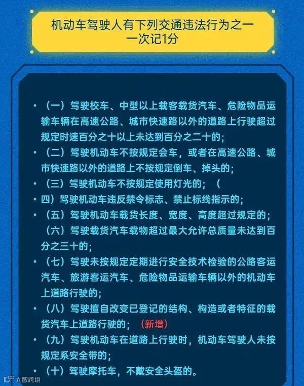 新:驾驶摩托车,不戴安全头盔的(1分)
