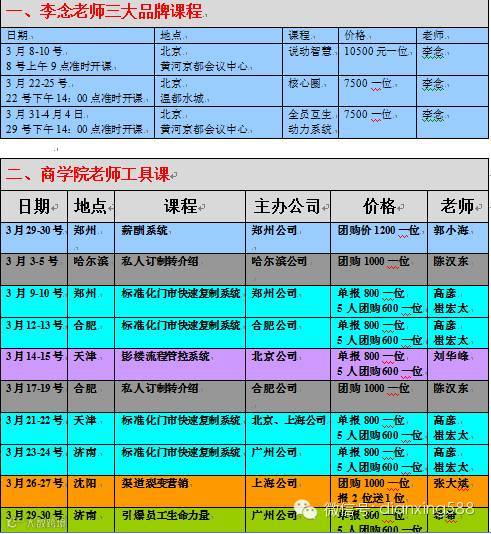 高彦、崔宏太导师3月份课程安排
