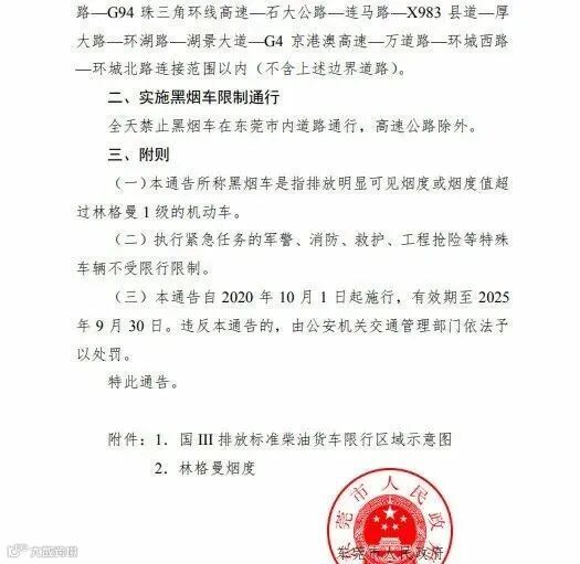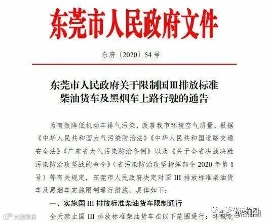 东莞市政府发布正式通告:限制国三柴油货车及黑烟车上路行驶!限行政策于10月1日正式实施,有效期至2025年9月30日。