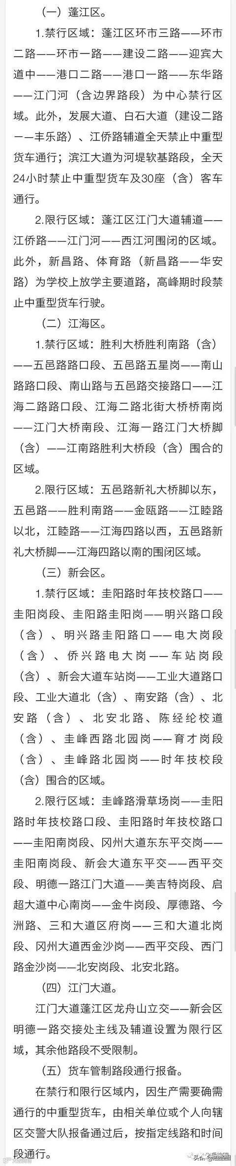 江门:10月1号起采用新的货车禁限行措施
